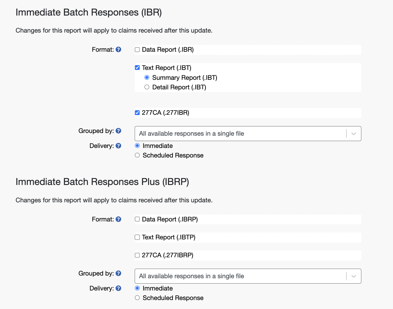 Adjust the EDI Reporting Preferences Configuration in your Availity settings (exact settings to select are listed below)