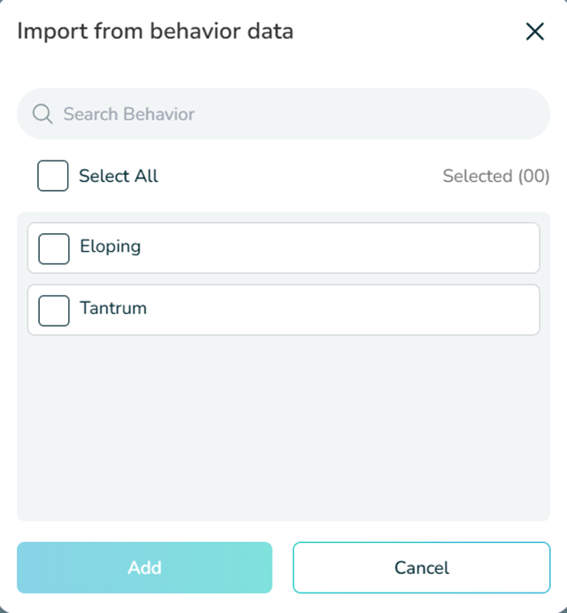 can import these behaviors onto your ABC Data Sheet by selecting the