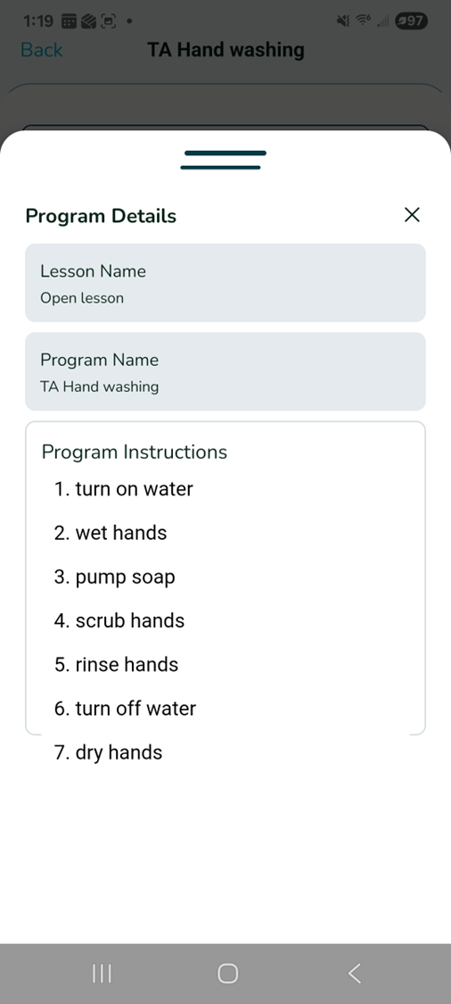 - Create a program for the Task Analysis (e.g. Hand Washing).