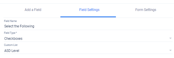 Field settings allows you to name your newly added field, adjust field settings (toggle/multi select/etc), and what available options to select from.