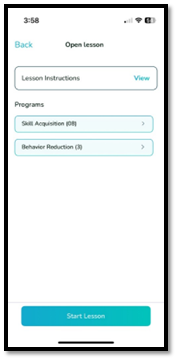 After tapping the lesson you wish to view, you will have the option to see more details about Skill Acquisition and Behavior Reduction programs. Tap either line to see specific programs, targets, and instructions for each program or target.