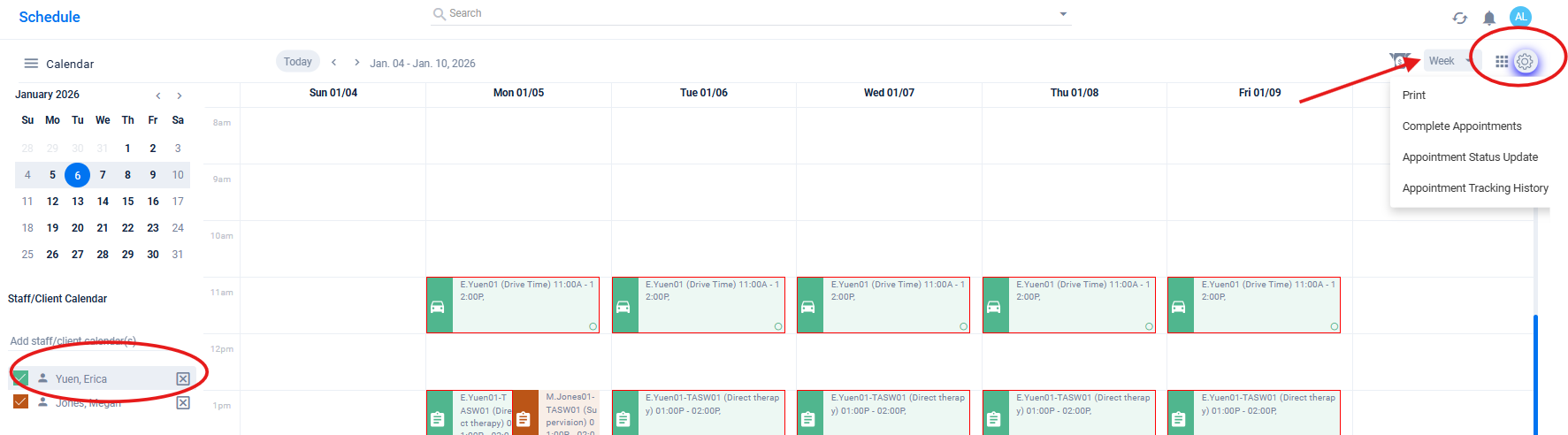 - To print a schedule first select which view you would like to print. The name should be checked and highlighted.