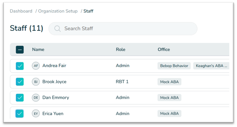 To invite multiple Staff, check the boxes to the left of the