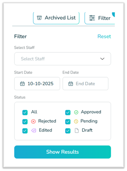 Approve/Reject) the Lesson Note. Admins and Reporting Managers can use this action to review and audit lesson