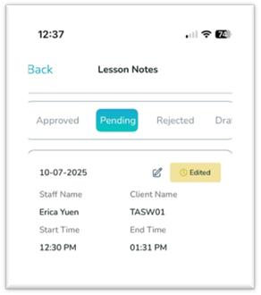 and edit submitted lesson notes. For example, if a staff has asked for the time