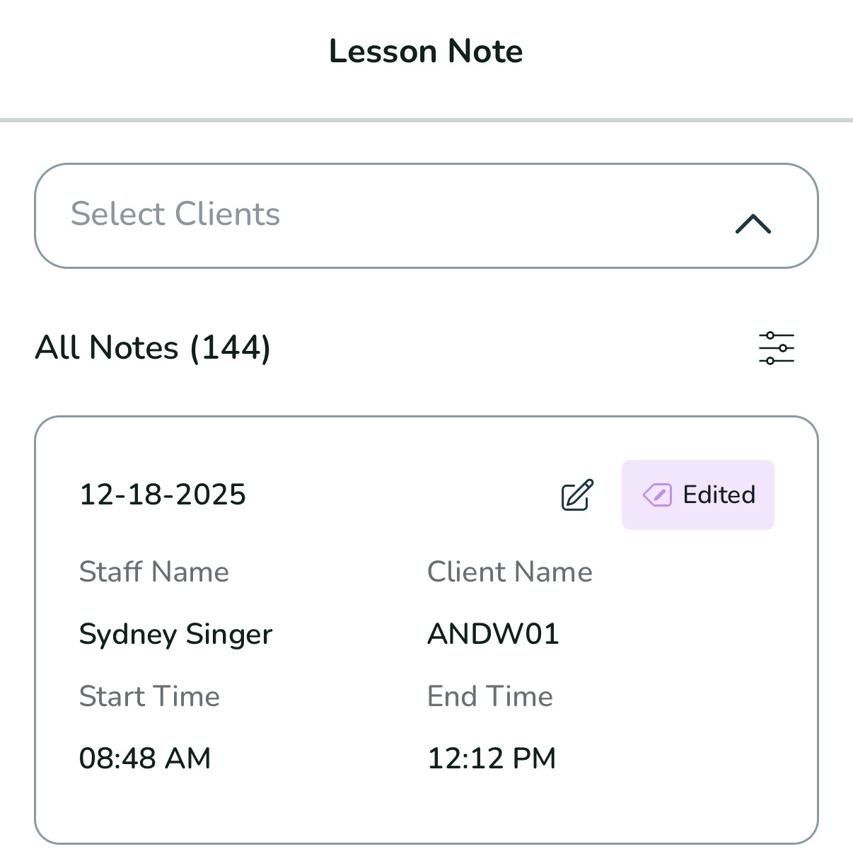 under the “Actions” column when viewing Lesson Notes in Reporting &